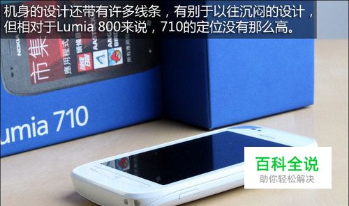 诺基亚710外观 诺基亚Lumia 710的外包装还是诺基亚一贯的蓝色,诺基亚Lumia 800主打的是轻薄的合金机身,但是诺基亚Lumia 710则是更加类似诺基亚的经典设计那样,厚厚的,工程塑料感也略为有点强。诺基亚Lumia 710的后盖分为磨砂以及烤漆设计等,白色的是烤漆设计,黑色的会是磨砂设计。诺基亚Lumia 710的机身尺寸是119x62.4x12.5mm。