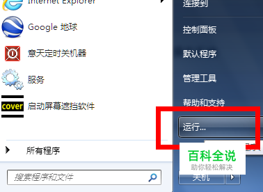 在开始菜单中打开运行按钮。