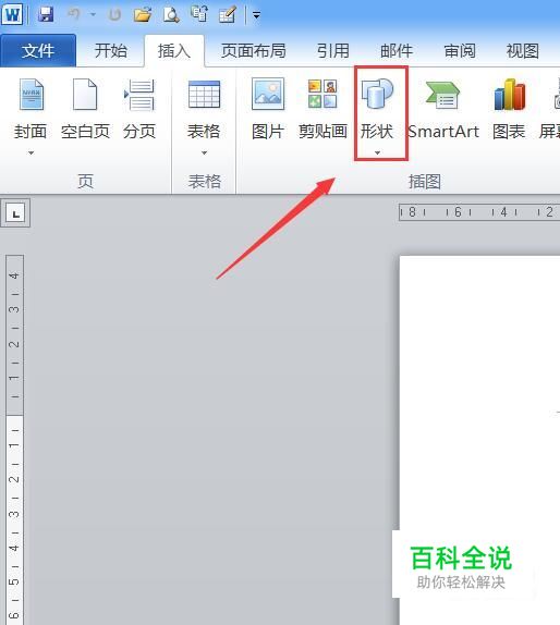 打开word之后在菜单那里找到插入选项,点击插入选项在其内找到形状选项,如图所示: