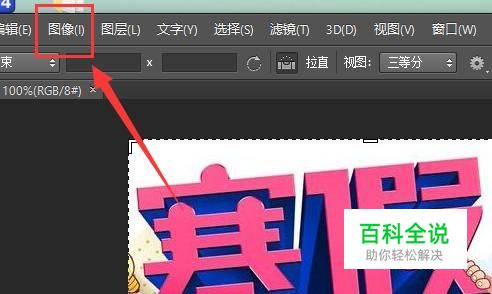 在ps里打开需要修改的图片后,我们点击界面上方的"图像",将图片加入到PS中。