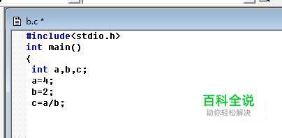 我们定义三个整型变量a、b、c,其中a=4,b=2,c=a/b。经过分析我们可以知道,若不转换数据类型,则c=2。