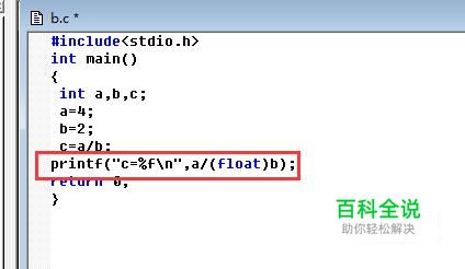 接着我们输出c,在输出语句中对c进行强制转换,将其由整型转换为浮点型。