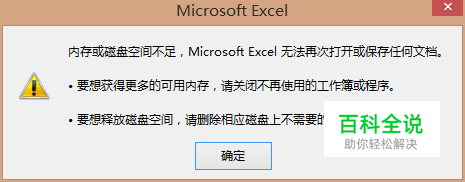 内存或磁盘空间不足,Microsoft Excel无法再次打开或保存任何文档。