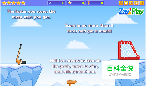 尽量用少的时间,将冰球打入网中,要是获得更多的星星就更好了!