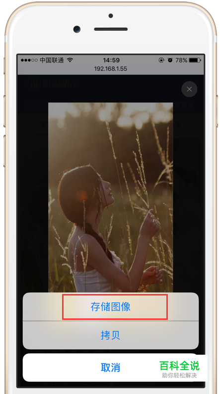 长按屏幕在弹出选项中选择“存储图像”将壁纸保存到移动设备相册中; 如果是已开启 3D Touch的移动设备长按屏幕之后向上滑动才能弹出“存储图像”的选项