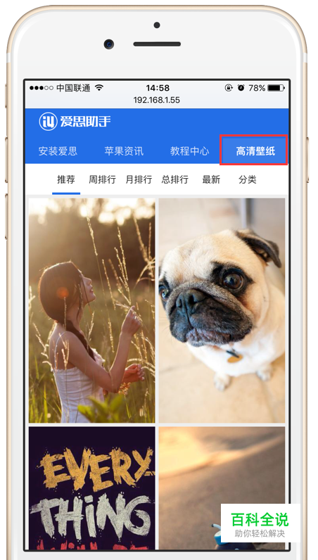 在移动设备浏览器中打开m.i4.cn,点击“高清壁纸”,点击自己喜欢的壁纸;