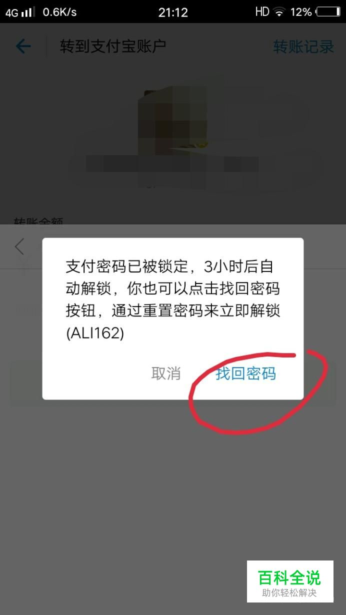 如果密码输入三次错误,那么支付密码会被锁定,这个时候可以点击图片中的找回密码。