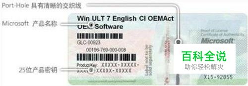 查看微软正版标签 购买Win7旗舰版时,可以通过查看微软正版标签(COA),是否是正版微软软件的标签。正版微软软件的标签,COA左侧是由纸纤维填充的Port-Hole,垂直交织一条金属线,操作系统页面上面清晰显示红色“OURPASSION”以及“Microsoft”字样,中间会显示版本和语言。 微软系统正版标签 微软COA的形状会因产品不同而略有差异。