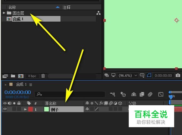 鼠标再右击“例子”;弹出的菜单中鼠标放在“替换素材”这里,右侧弹出子菜单再点:纯色 注:在AE高版本中已把固态层的图层改名为“纯色”。