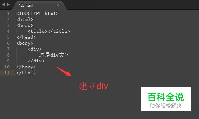 然后我们在html页面中加入div标签,并且在div标签中加入一些文字,如下图所示