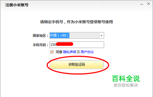 输入手机号码后点击获取验证码的按钮,如图所示: