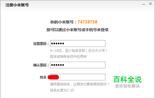 输入密码和姓名性别等信息后点击完成按钮,如图所示: