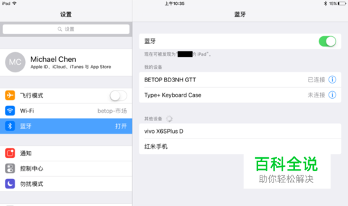 下载完后,先按下北通P1游戏手柄的HOME键启动手柄,然后按下支架下方的MODE键到苹果模式;同时打开设备的蓝牙,搜索并连接上