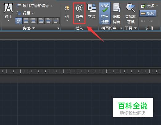 选择文字选项在编辑区里点击鼠标左键再在上面找到符号选项,如图所示: