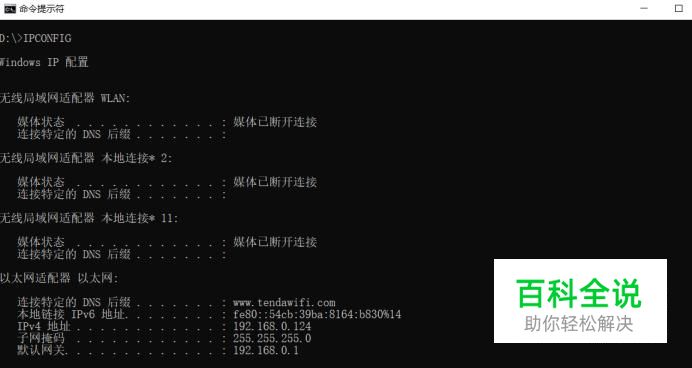 查看IP配置,输如命令 ipconfig,如下图