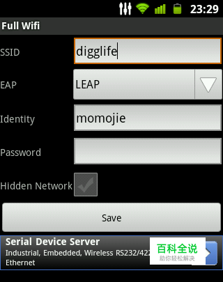 很多公司内部的无线网络会用到LEAP认证机制,需要通过输入用户名和密码来登陆到无线网络。如果你使用的是iOS设备,系统只会会提示你输入用户名和密码,你完全可以不必理会和无限网络技术相关的任何东西,而很遗憾的是,如果你手头上是一个Android设备,当你选择公司WiFi的时候系统弹出框会有几个项目需要自行选择,其中并没有出现LEAP字样(会有PEAP,EAP-TLS等),所以即便输入了用户名和密码也无法登陆。事实上,Android本身是支持LEAP的,只是没有在图形界面中加入这一选项。这个问题早在2009年初就有人在Android的Google Project讨论区提出,跟帖很多,但是似乎并没有引起Android团队足够的重视,据我所知,直到Android 2.3 LEAP依然没有加入到WiFi的设定选项里,原因不明。解决方案有两个:手动修改wpa_supplicant配置文件,加入LEAP无线网络配置信息安装第三方APP 方案一:手动修改wpa_supplicant配置文件,要Root权限 Android将所有连接过的WiFi热点信息都保存在/data/misc/wifi/wpa_supplicant.conf这个配置文件下,包括SSID,加密方式,WiFi密码等等,所以我们只要手动加入LEAP无线网络的完整信息,然后重启WiFi,系统就会重新获取配置文件中的信息,我们就能够登入新加入的LEAP无线网络了。网上有wpa_supplicant.conf的完整说明文件和范例,大家可以参考。关于LEAP无线网络的范例如下:network={ ssid=“无限网络名称“ key_mgmt=你的无线网络使用的加密方式 eap=LEAP identity=“用户名“ password=“密码“}关于key_mgmt,如果不设置,默认为最常见的WPA-PSK WPA-EAP。具体列表如下:# key_mgmt: list of accepted authenticated key management protocols# WPA-PSK = WPA pre-shared key (this requires 'psk' field)# WPA-EAP = WPA using EAP authentication# IEEE8021X = IEEE 802.1X using EAP authentication and (optionally) dynamically# generated WEP keys# NONE = WPA is not used; plaintext or static WEP could be used# WPA-PSK-SHA256 = Like WPA-PSK but using stronger SHA256-based algorithms# WPA-EAP-SHA256 = Like WPA-EAP but using stronger SHA256-based algorithms# If not set, this defaults to: WPA-PSK WPA-EAP所以,对于一个SSID为digglife,使用WPA-EAP加密的LEAP无线网络,我们以用户名momojie和密码123456登陆,可以写成下面这样:network={ ssid=“digglife“ key_mgmt=WPA-EAP eap=LEAP identity=“momojie“ password=“123456“}将以上几行添加到wpa_supplicant.conf文件中即可。至于修改方法,我想就不必赘述了,用惯终端(或命令提示符)+ADB interface的朋友应该很熟悉。不习惯命令行的利用Root Explorer修改也可以。注意,如果你在本地修改后上传到手机端,注意最后修改一下文件的权限、文件Owner和Group,否则在机器重启之后,系统可能无法读写这个配置文件,导致WiFi会提示错误。原始文件的权限设定如下:-rw-rw---- 1 system wifi 444 Apr 7 19:49 wpa_supplicant.conf 方案二,安装第三方WiFi配置APP 下面介绍的这些APP只是将以上步骤UI化了而已,原理都是一致的,另外也不需要Root权限。1. Full WiFi支持LEAP WiFi, PEAP, TKIP, CCMP等等,设定选项也很全面。2. LEAP WiFi Free只针对LEAP WiFi的Android App,设定简单,输入SSID、用户名和密码,保存之后就可以在系统的WiFi设置里连接了。如果你手机已经获得Root权限,我还是建议使用第一种方法,不安装APP就能解决,何乐而不为?