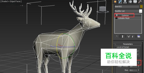 给模型添加"Optimize"(优化)修改器.并通过调整面阈值,使得模型在不破坏大体外形的情况下尽量接降低多边形,这样就完成模型的降级。
