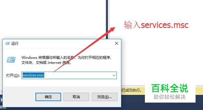 然后我们按Win+R组合键打开运行窗口,输入services.msc命令,如下图所示