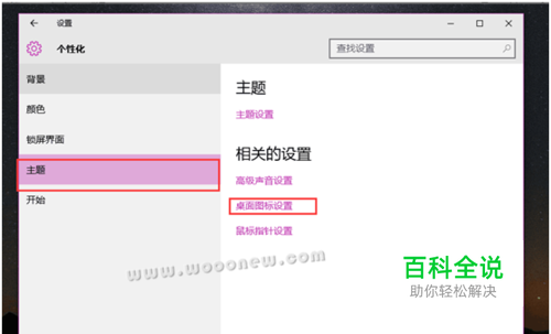 2、个性化设置里面选择主题相关设置里的“桌面图标设置”
