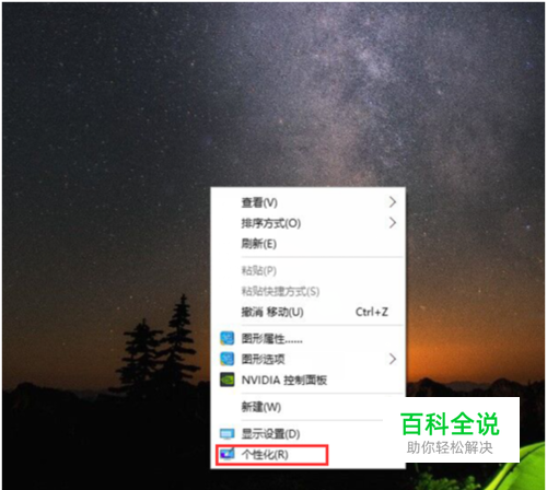 1、在桌面空白处按鼠标右键选择个性化