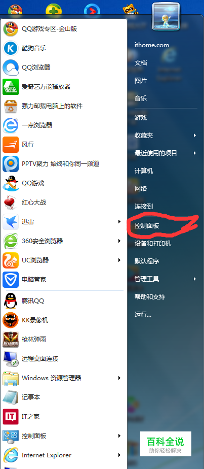点击控制面板。