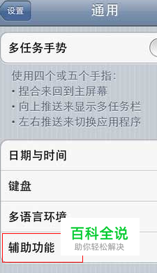 iPhone手机有个一很人性化的功能就是手势功能,但是有的新手对这个设置方法不是很了解,所以这里分享下设置手势功能的操作方法。