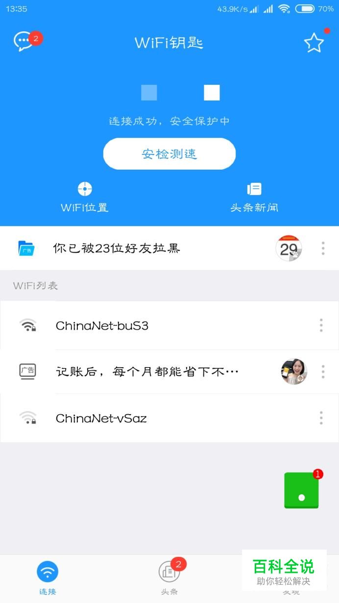 首先打开手机的WiFi万能钥匙APP,打开数据和WiFi权限,然后选择一个最近的WiFi连接,并退出WiFi万能钥匙。