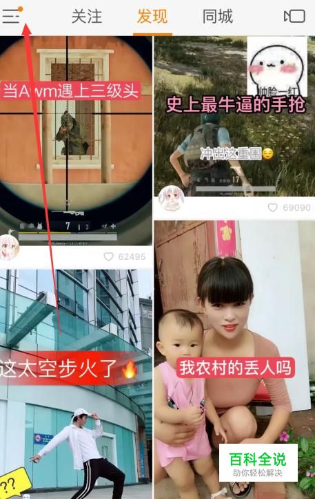 首先你登陆到快手,如下图,然后在左上边上有一个符号,点击进入里面去。