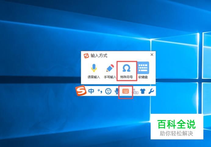 然后我们点击搜狗输入法的悬浮窗中的键盘按钮,弹出的界面,我们点击特殊符号;