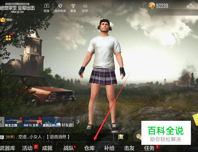 首先你要先登录全军出击的客户端,然后在下面找到仓库,如下图。