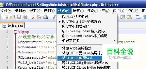 保存文件,最好是修改文件的编码为utf8,Notepad++修改为utf-8的方法为工具栏-格式-修改为utf8编码格式。