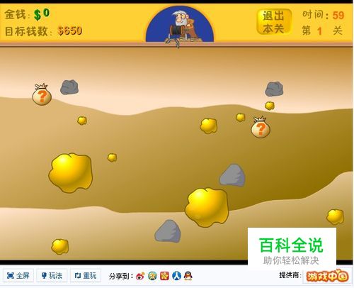 这关大多数人都见过的!个人认为很能区别高手和菜鸟的关。首先下手很准的人,第一下肯定可以什么都不碰就拿到钻石,然后抓其它……但和UP主一样的菜鸟呢?个人建议先抓左边的袋子,把握好比钻石好抓,抓错了也是50分的小金块,浪费时间不多。袋子里万一出个大力,你就可以放心地把所有东西抓走了~或者出个炸药,如果你自己还有个炸药,那么抓右边钻石也更有把握了,抓到大石头就炸!小的石头上去快不用炸~