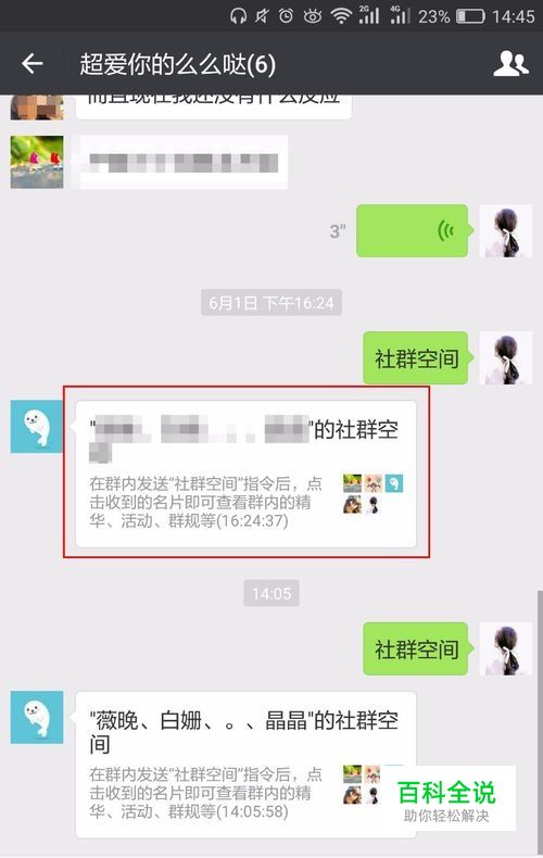 1、首先在群内输入“社群空间”,然后点击出现的链接,如下图所示: