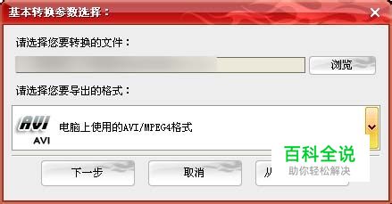 选择调大声音后要保存的视频格式 添加视频直到进入“基本转换参数选择”对话框,在“请选择您要导出的格式”下拉列表选择自己需要保存的格式,然后点击“下一步”。