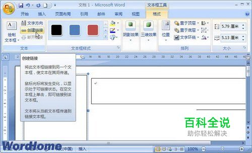 在使用Word2007制作手抄报、宣传册等文档时,往往会通过使用多个文本框进行版式设计。通过在多个文本框之间创建链接,可以在当前文本框中充满文字后自动转入所链接的下一个文本框中继续输入文字。在Word2007中链接多个文本框的步骤如下所述: