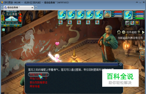 这里的时候点第二个选项,第一个就没有战斗了(在这里拿到过金刚定魂等五宝)