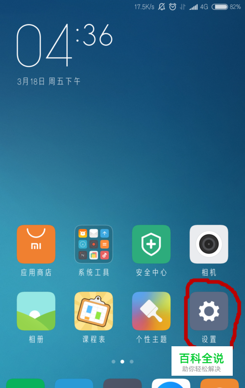 第一步 打开设置,进入关于手机选项 首先打开你的小米手机 的" 设置"(就是桌面上画了个齿轮的图标),接翻到最底层,找到 " 关于手机 " 这一项,点击进入。