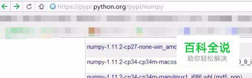 先下载适合你电脑的numpy安装文件。本人是python3.4版本,32位windows系统,所以下载的是这个:numpy-1.11.2-cp34-none-win32.whl (md5, pgp) 下载地址见下图