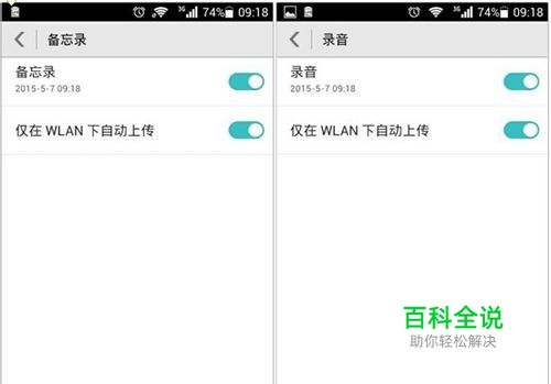 备忘录、录音可以进行选择是否开启,如果开启后可以通过打开仅在WLAN下自动上传,可以节省流量的同时也可以保证备忘录数据不会丢失。