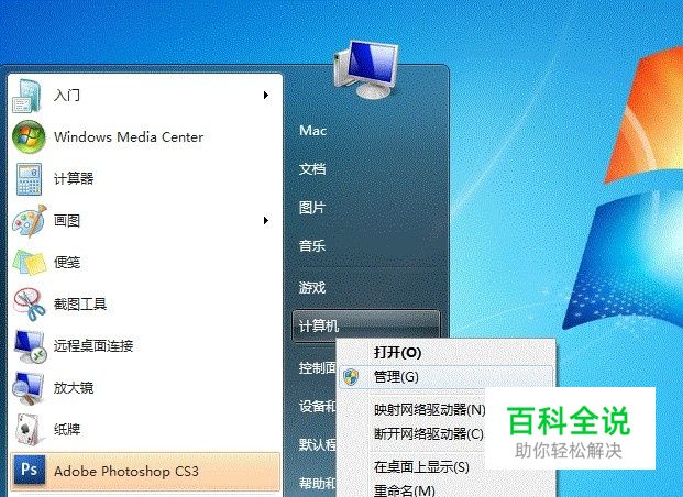 第一步:取消禁用Guest用户 1.点击【开始】按钮,在【计算机】上右键,选择【管理】,如下图所示: