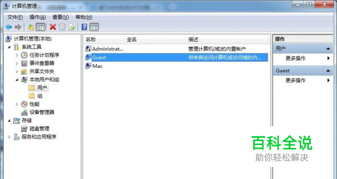 2. 在弹出的【计算机管理】窗口中找到【Guest】用户,如下图所示: