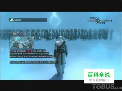 在普通状态下,按住B键不放可以轻推开挡路的人。在普通状态下,按住RT+B的话则是用力推开人。 在普通状态下,按住RT+A是加速跑,在有可攀爬地点时为自动攀爬。是游戏中使用频率最高的技巧。