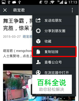 在订阅的微信公众号上找到带有视频的文章,点击右上角,复制链接
