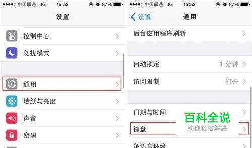 第一步:首先我们要点击设置,然后选择通用,进入之后向下滑动菜单找到键盘选项。点击进入键盘之后会发现在这个菜单下还有一个键盘选项,点击进入。