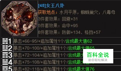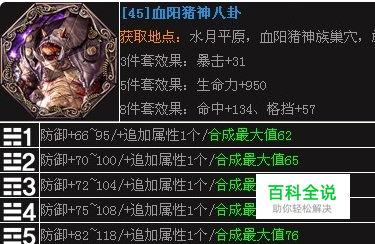 剑灵现在最好的八卦牌是哪套_剑灵最好八卦牌数据解析 45级到来后,大家对于八卦牌的选择是众说纷纭,其实大家只要认识好自己对于自己这个职业的走向就知道该怎么选着了,如:LZ是气功师,本人对自己气功师的定位是PVP猥琐,PVE需求高输出,那么本人的选择当然是主属性暴击,但不是蜘蛛八卦牌一套,而是最佳搭配(蜘蛛1.2.3.4.6+永灵5.7.8)命中和暴击都能达到最佳搭配。反正群战PVP我都是属于极其猥琐类,因为个人觉得一个猥琐的职业你不猥琐给你一个肉也是死啊,至于单人PVP那还是要讲手法了,没手法给你在牛的你也被虐。好了不多说,大家自己去搭配自己取向的八卦吧!下面附上争议八卦图数据: 剑灵八卦牌 血猪1号:追加随机(命中12/16.血值120/160.暴击12/16) 血猪2号:追加随机(命中13/17.血值130/170.暴击13/17) 血猪3号:追加随机(命中14/18.血值140/180.暴击14/18) 血猪4号:追加随机(命中15/19.血值150/190.暴击15/19) 血猪5号:追加随机(命中16/20.血值160/200.闪避16/20) 血猪6号:追加随机(命中16/21.血值160/210.暴击16/21) 血猪7号:追加随机(命中17/22.血值170/220.暴击17/22) 血猪8号:追加随机(命中18/23.血值180/230.暴击18/23) 血猪八卦整套后的属性值:主属性:(防御905) 8件套必加成属性:(暴击31)(生命950)(命中134)(格挡57) 可选择合成属性最大值:(587) 三选一随机属性最大值:(命中156)(血值1560)(暴击136+闪避20) 注:三选一随机属性是专一属性计算最大值,非乱搭配计算值。 剑灵八卦牌 蜘蛛1号:追加随机(格挡12/16.防御力12/16.闪避12/16) 蜘蛛2号:追加随机(格挡13/17.防御力13/17.闪避13/17) 蜘蛛3号:追加随机(格挡14/18.防御力14/18.闪避14/18) 蜘蛛4号:追加随机(格挡15/19.防御力15/19.闪避15/19) 蜘蛛5号:追加随机(格挡16/20.防御力16/20.闪避16/20) 蜘蛛6号:追加随机(格挡16/21.防御力16/21.闪避16/21) 蜘蛛7号:追加随机(格挡17/22.防御力44/55.命中44/55) 蜘蛛8号:追加随机(格挡18/23.防御力18/23.闪避18/23) 女王八卦整套后的属性值:主属性:(暴击905) 8件套必加成属性:(闪避31)(命中95)(防御134)(格挡57) 可选择合成属性最大值:(587) 三选一随机属性最大值: (格挡156)(防御189)(闪避134+命中55) 注:三选一随机属性是专一属性计算最大值,非乱搭配计算值。 剑灵八卦牌 永灵1号:追加随机(格挡32/41.暴击32/41.闪避32/41) 永灵2号:追加随机(命中34/43.暴击34/43.防御34/43) 永灵3号:追加随机(命中36/45.暴击36/45.闪避36/45) 永灵4号:追加随机(命中37/47.暴击37/47.格挡37/47) 永灵5号:追加随机(命中40/51.防御40/51.闪避40/51) 永灵6号:追加随机(防御42/53.暴击42/53.闪避42/53) 永灵7号:追加随机(命中44/55.格挡44/55.防御44/55) 永灵8号:追加随机(命中45/57.防御45/57.血量450/570) 失落勇灵整套后的以暴击为主的属性值: (命中263)(生命1030)(格挡179)(闪避231)(暴击1354)(穿刺167) 以上本人是安目前最热搭配还是以暴击为主,计算的最大加成值,还剩5.7.8牌的随机属性未计算在内请自行选择添加计算o(∩_∩)o 剑灵八卦牌 好了各位暂时水月豪杰八卦本人先不计算了,还有本人喜欢的(蜘蛛12346+永灵578)的属性值计算,我进游戏了,排队结束,努力去日常啊,做完后还要继续刷牌子,不过我会在明天上午睡觉前给大家计算出来,小弟不才也不知道上面有木有眼花算错的,有的话请留言,小弟会改的,请大家顶贴,别让我辛苦半天,到处找数据发的贴啊。很幸苦的拿着手机计算的呢!