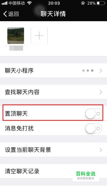 此时会进入到【聊天详情】页面,接着打开【置顶聊天】功能。