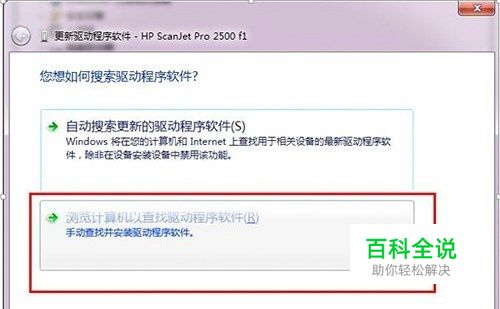 更新驱动程序页面选择“浏览计算机以查找驱动程序”
