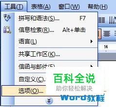 打开Word,点击菜单栏--工具--选项。