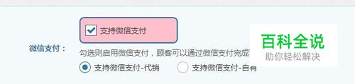 微信支付;勾选则启用微信支付,顾客可以通过微信支付完成订单付款。