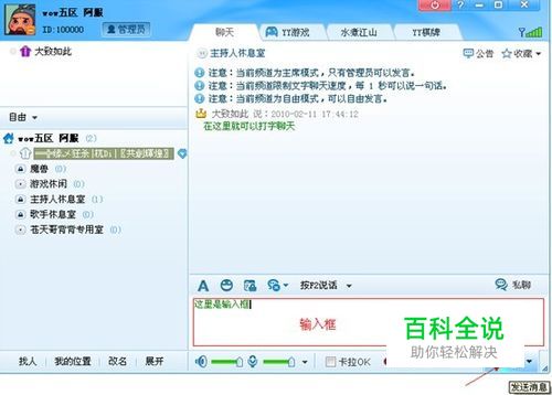 进入频道之后,如果频道允许文字聊天,您就可以自由的使用文字与频道里面的其他用户进行聊天了。